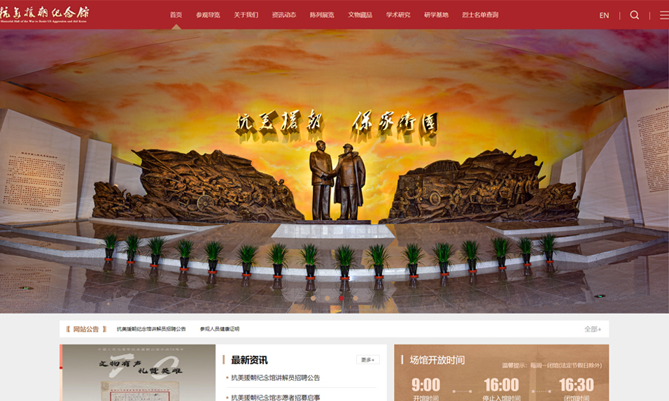 抗美援朝紀(jì)念館位于遼寧省丹東市鴨綠江畔的英華山上,與朝鮮民主主義人民共和國新義州市隔江相望,是全國唯一全面反映中國人民抗美援朝戰(zhàn)爭和抗美援朝運(yùn)動(dòng)歷史的專題紀(jì)念館。
